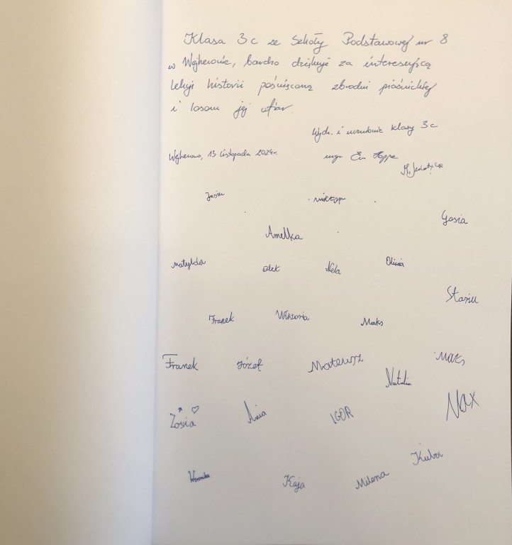 13 listopada 2024 roku w Muzeum Piaśnickim w Wejherowie dokonano symbolicznego, pierwszego wpisu do nowo otwartej Księgi Pamiątkowej. To wyjątkowy moment w historii placówki, który rozpoczyna tradycję pozostawiania osobistych refleksji, wspomnień i słów uznania przez gości odwiedzających muzeum.